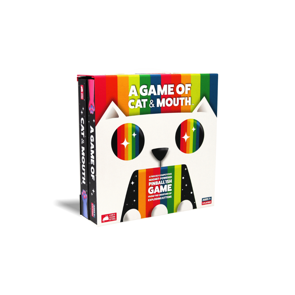 A Game of Cat & Mouth is a two-player game in which players use a magnetic cat’s paw to shoot balls at one another.
