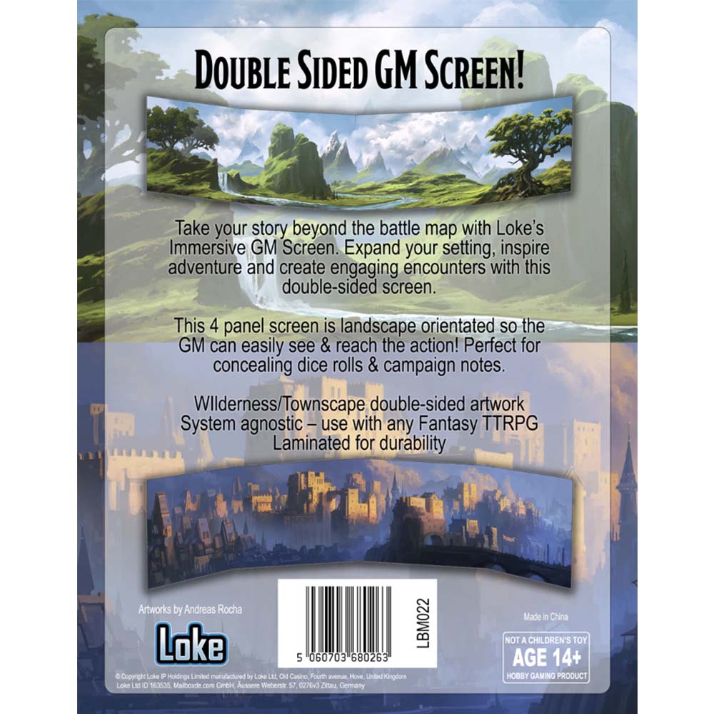 Ideal for concealing notes and dice rolls, the screen is also laminated allowing you to attached notes (or store Loke Battle Mats add-on scenery until needed!)