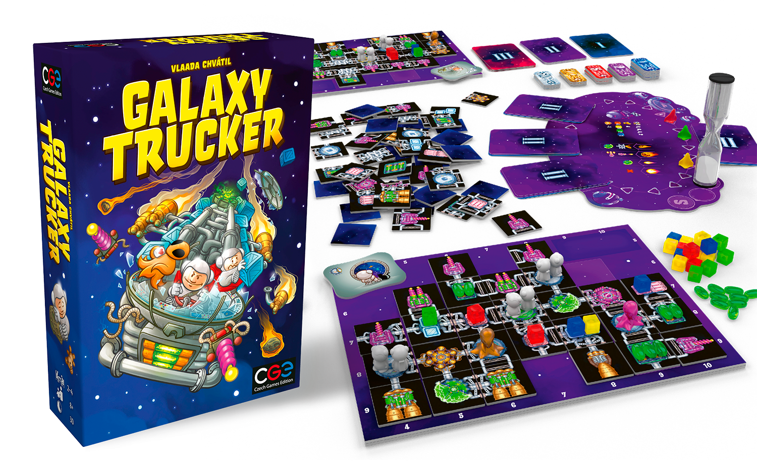 In this fast and goofy family game, 2 to 4 players begin by simultaneously rummaging through the common warehouse, frantically trying to grab the most useful component tiles for building their space ship—all in real-time.