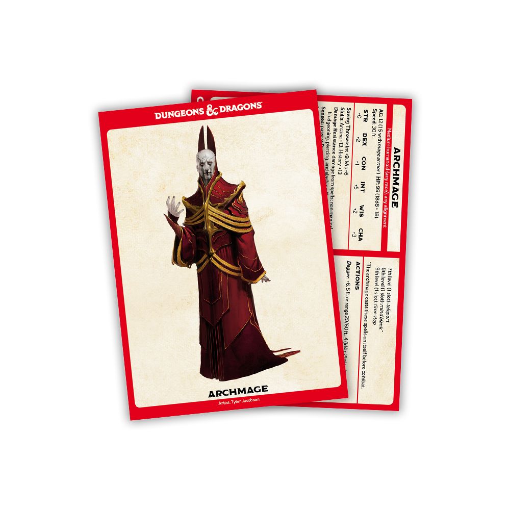 These 182 durable, laminated cards represent any non-player characters (NPCs) your players might meet during your next D&D game. From a bandit captain’s saving throws to a giant spider’s stealth bonus, these cards let DMs select, organize, and access the information they need to avoid disruptions during that critical encounter.